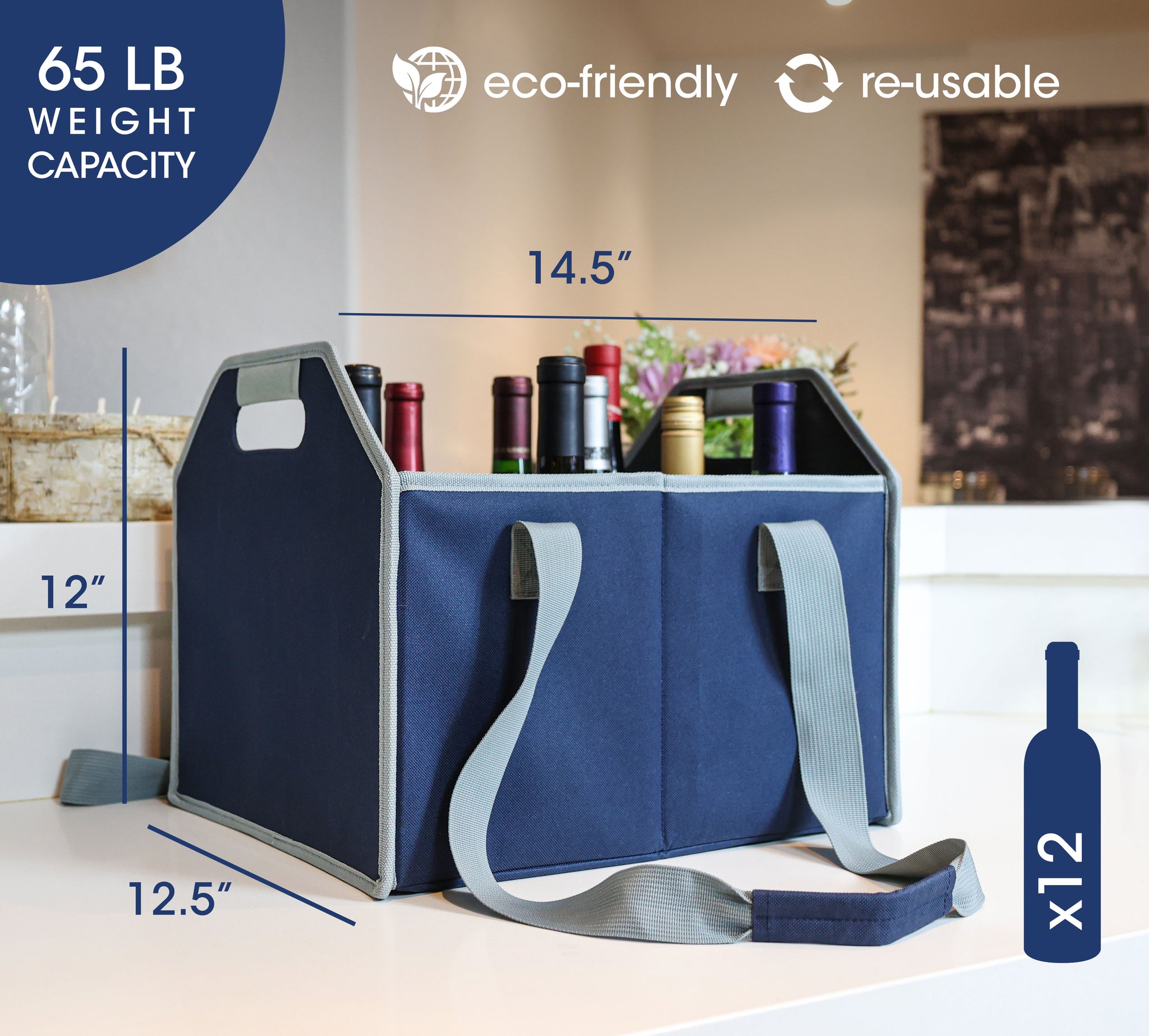 TheBarsentials 12 Bottle Wine Carrier Collapsible Reusable for Grocery Shopping