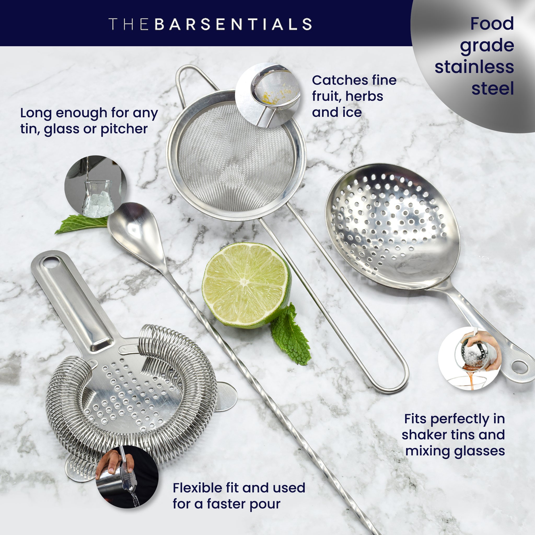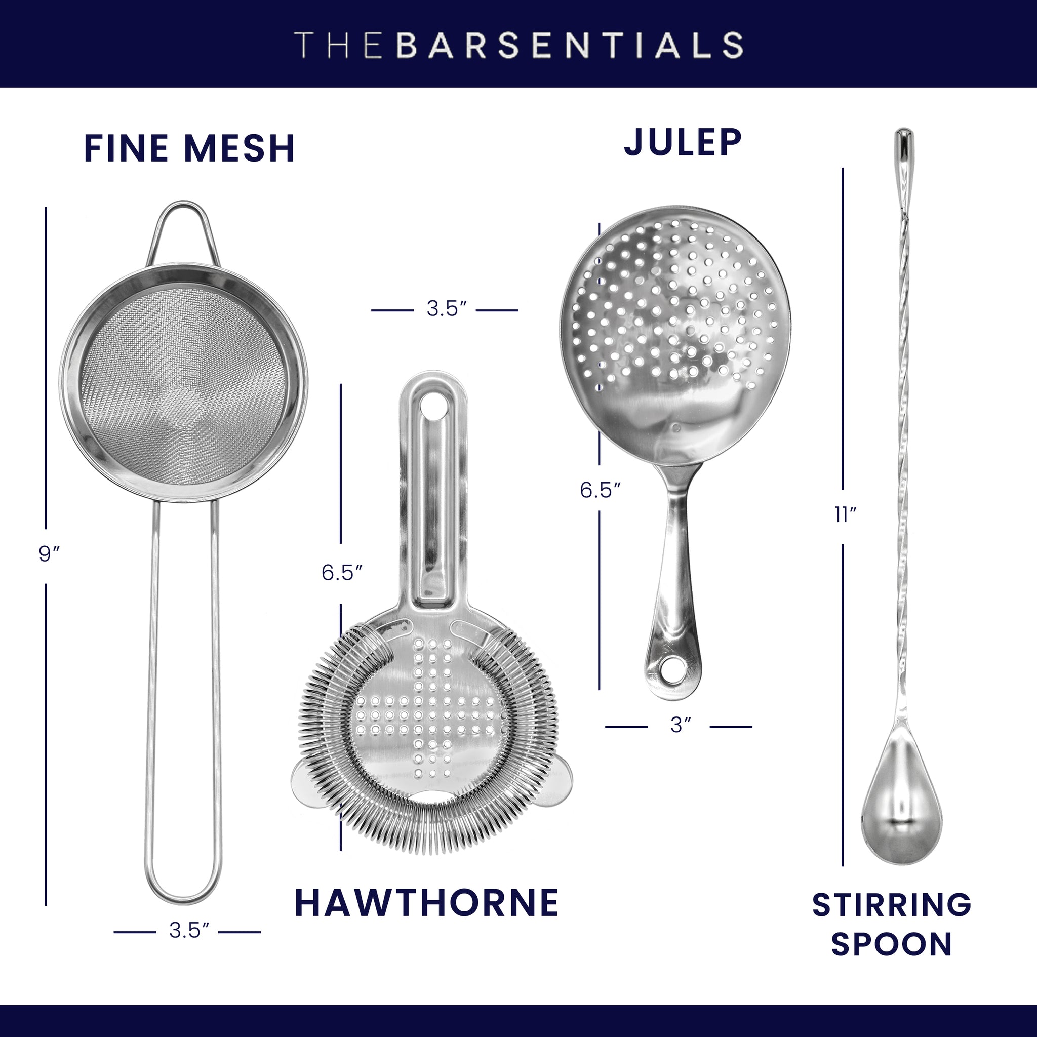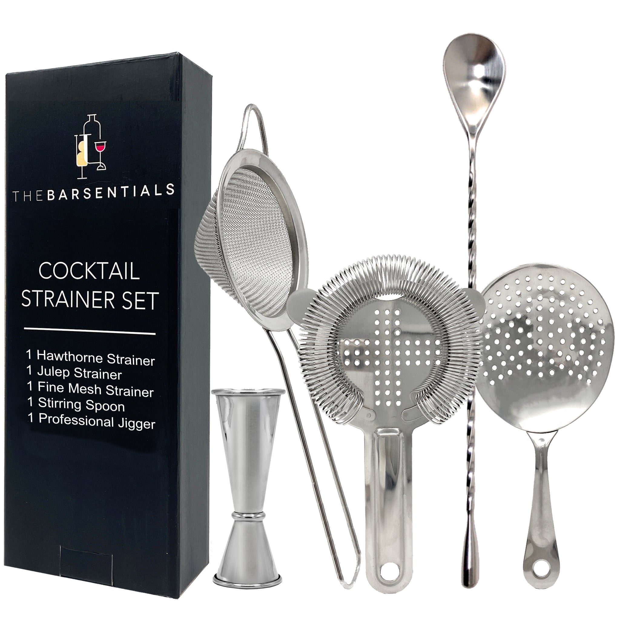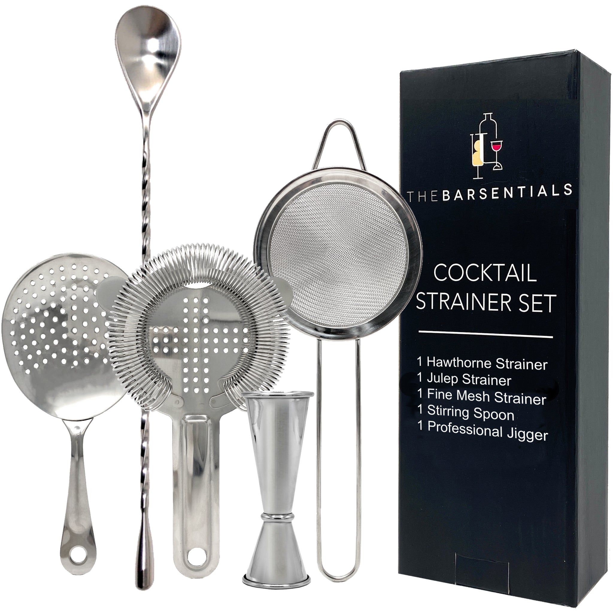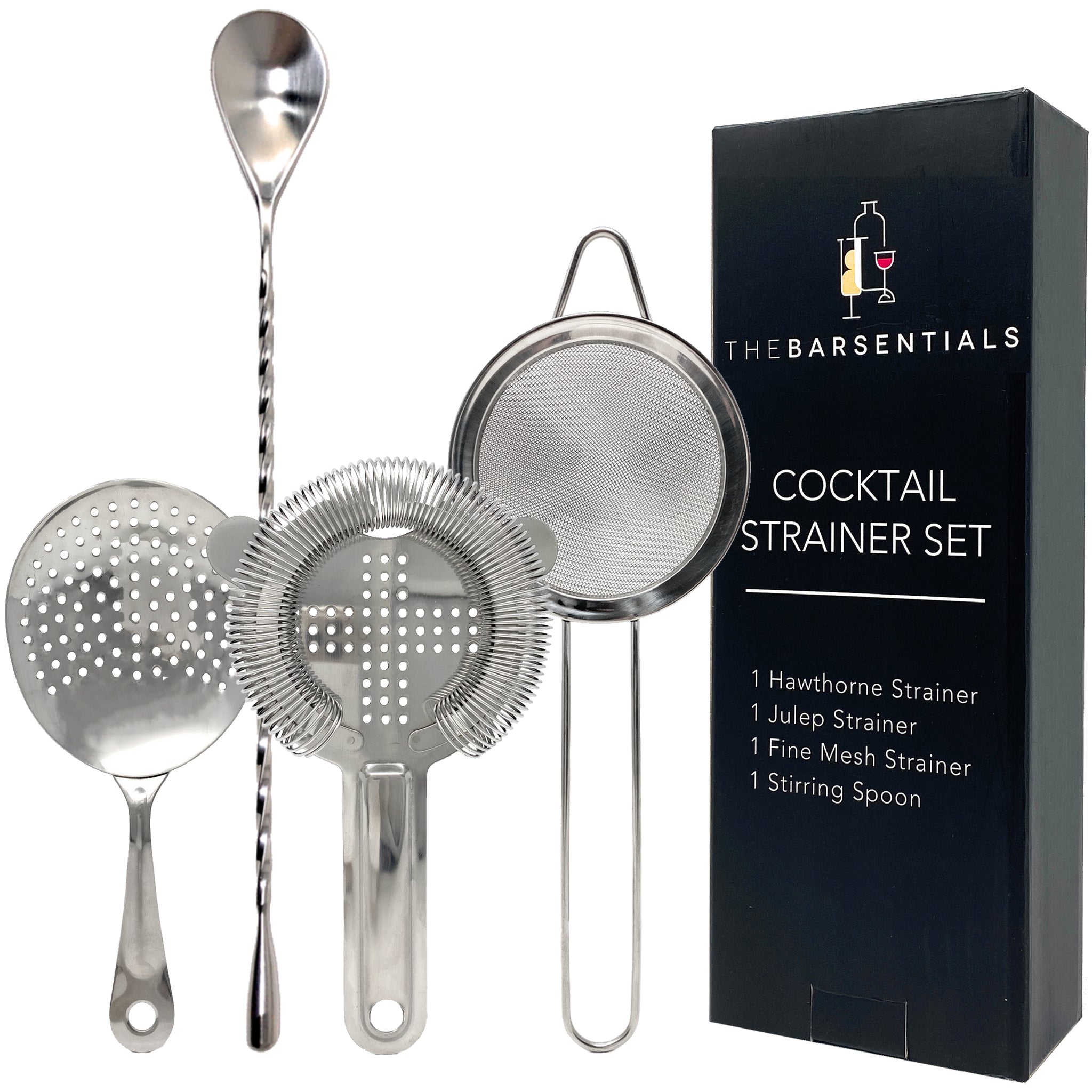 Cocktail Strainer Set with Stainless Steel Stirring Spoon, Hawthorne, Julep, Fine-Mesh Strainer